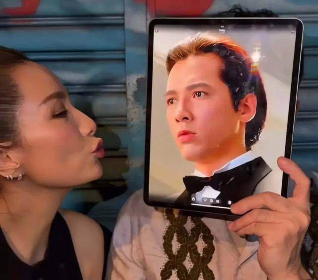 在社交媒体上,胡蓓蔚晒出和单立文的合照。只是在合照中,单立文的脸被平板电脑挡住了,反而贴上了他过去饰演的经典角色“侯赛因”,看上去特别搞笑。