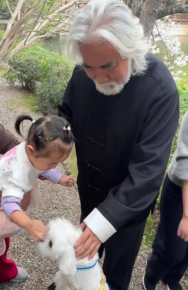 谁能想到,当年在片场拍《天龙八部》《神雕侠侣》,说一不二的大导演,如今居然满头白发,牵着个小丫头逛公园,不知情的人,妥妥以为是爷孙俩。