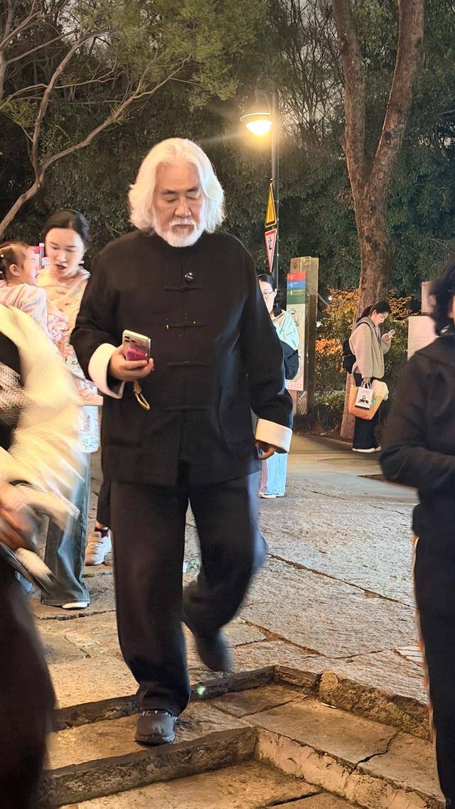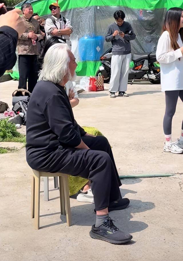 刚开始网友们还没敢认,就觉得这个白发老人身子骨挺硬朗,穿着一件休闲大褂,下身是宽松的裤子,脚上踩着一双软底运动鞋,看着就很舒服,不像圈里人那样讲究排场。