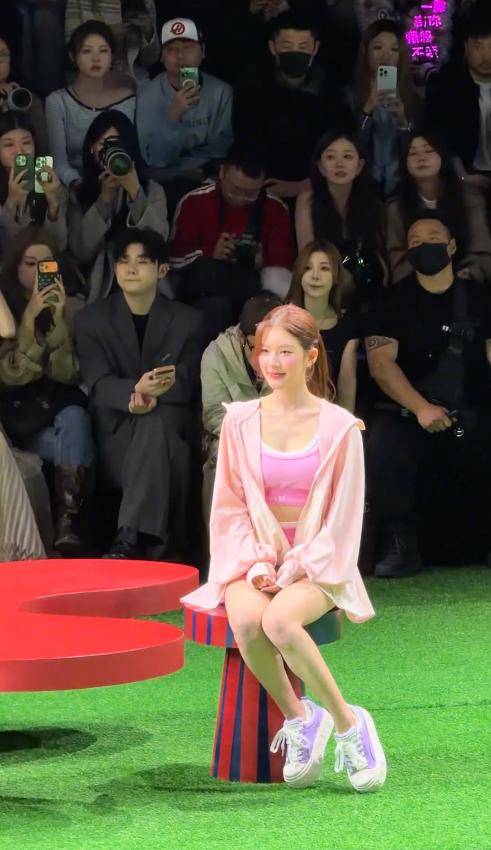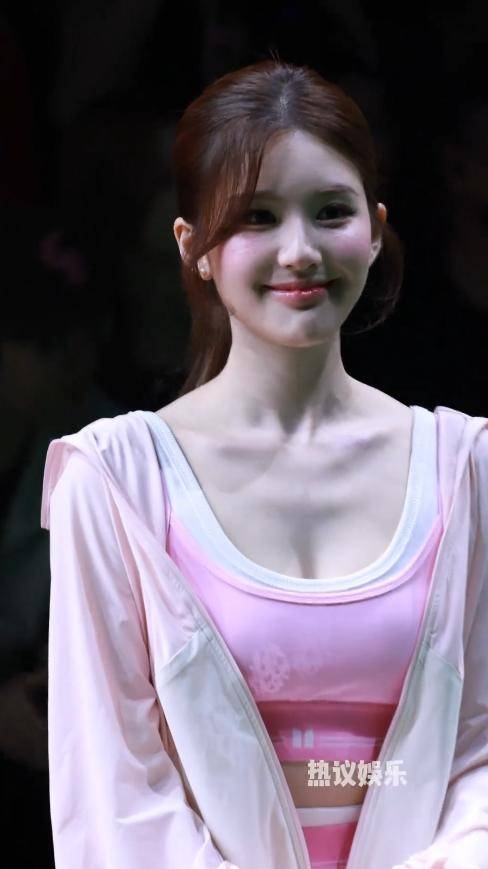 别的女星都穿着礼服长裙,她却一身粉白色运动套装亮相,格外吸睛。