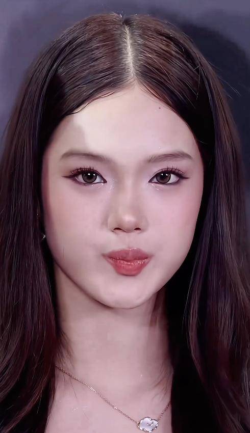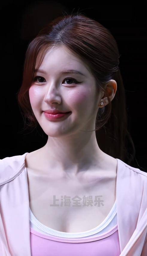 她的妆容是粉透的水蜜桃妆,底妆细腻,腮红恰到好处,眼神干净灵动。
