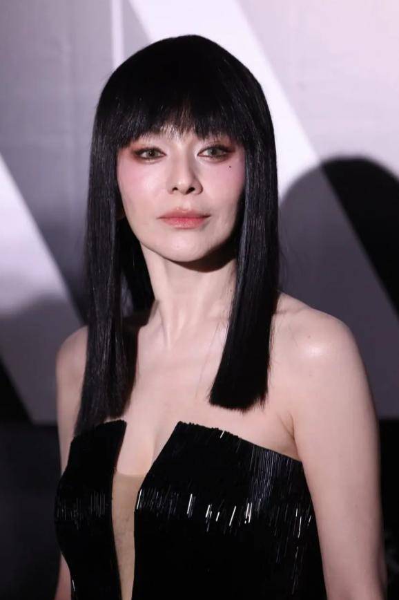她的妆容自然,眉眼间依旧带着当年的灵动,一头飘逸的长发衬得她五官更加立体,整个人看起来时髦又干练。