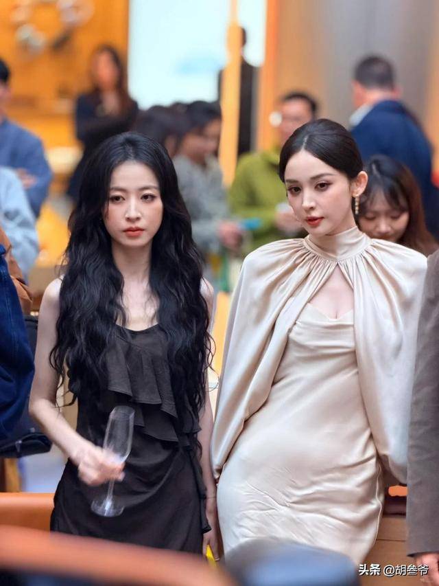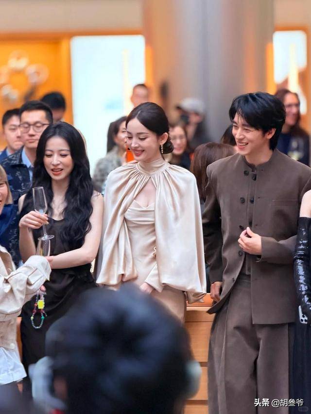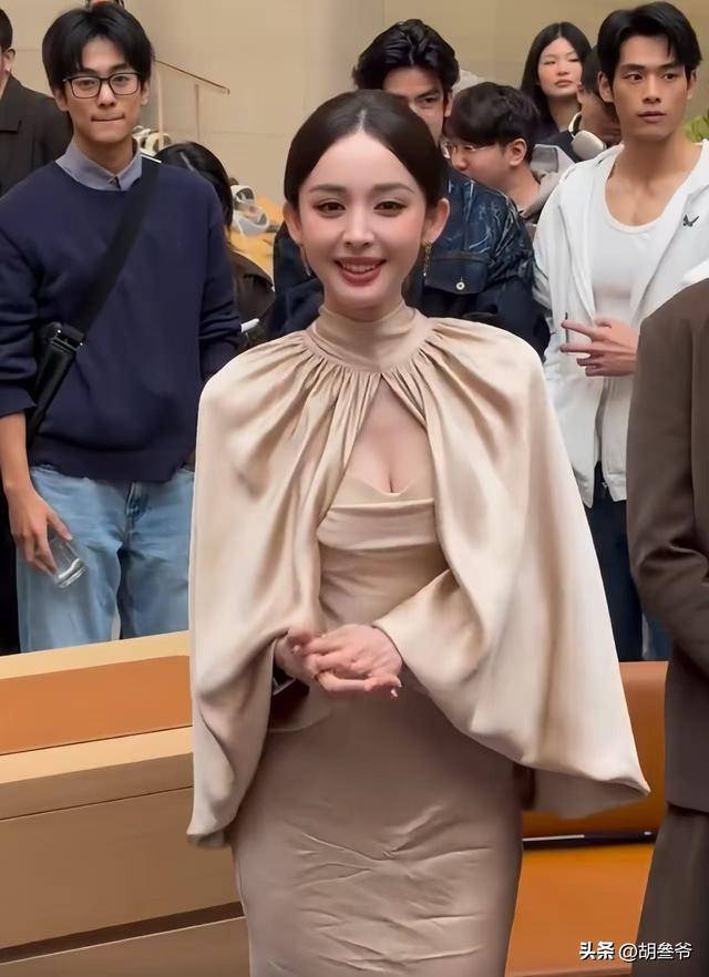 当时她穿的是乌克兰高定品牌Kristina Fidelskaya2026春夏系列的香槟金缎面礼服,柔光缎面材质在灯光下泛着鎏金的光泽,贵气十足。