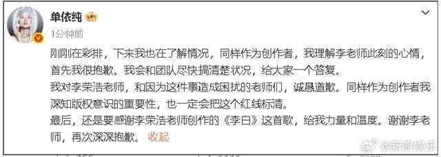 单依纯方在演唱会排练间隙匆匆发文道歉,但按律师的说法,她侵权这事是板上钉钉,哪怕道歉也难以撇清责任。