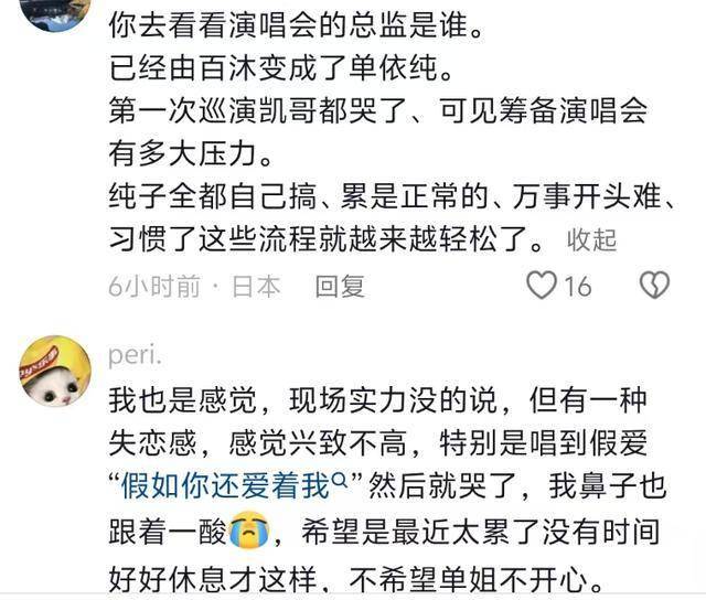 她昨天演唱会的气氛透露出了一种紧张和焦虑,没以前那种说很多话的环节了,惜字如金,唱歌也有点紧绷放不开。
