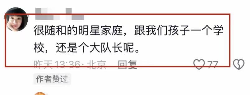 小酒窝虽然是星二代,但她在性格上非常随和,从来没有高高在上的样子。而且她读的是公立小学,还是大队长呢。