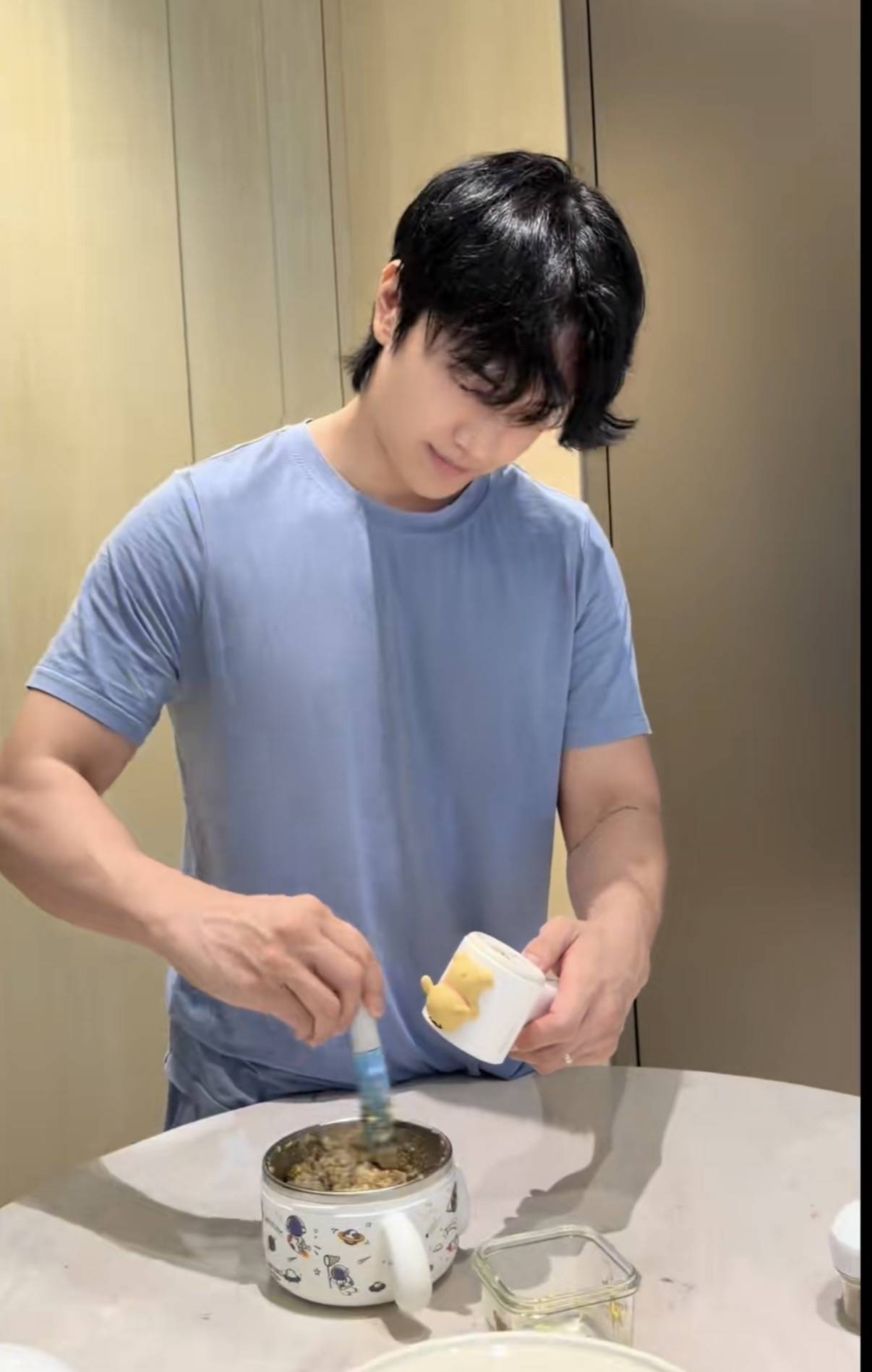 小浩霆对蛋清过敏,所以做辅食的时候只能用蛋黄,蛋清是需要完全过滤出去的。张檬穿着宽松的家居服,头发也有些凌乱,她的模样太接地气了。