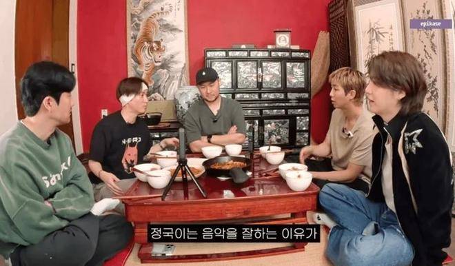 在节目的最后,RM还爆料了BTS过去的一段往事,回忆起成员之间曾经发生的争吵。当被问到在洛杉矶写歌时是否和成员们发生过冲突时,RM坦言确实有过争吵。他回忆起那时大家喝了点酒,情绪比较激动,第二天还要继续工作,他本想尽快平息场面,提议就此为止,但没想到智旻却突然对他说:哥,你也不能那样跟泰亨讲话吧。 RM说,当时泰亨也把心里的委屈都说了出来,甚至情绪失控哭了出来,令他当场十分惊讶。他无奈地笑道,原本以为自己是想做和事佬,结果一秒钟变成了天下第一坏人,场面瞬间失控。RM还补充道,自己在三人中算是最清醒的,所以才先回了房间,打算冷静一下,也顺便思考第二天的工作安排。SUGA则在旁边帮忙还原了现场,表示自己当时一直劝说:现在看起来根本不是适合吵架的时候吧。 RM听完后也忍不住笑出声,表示至今有时耳边还会回响起智旻当时的那句你也不能那样跟泰亨讲话吧,让现场再次充满欢声笑语。