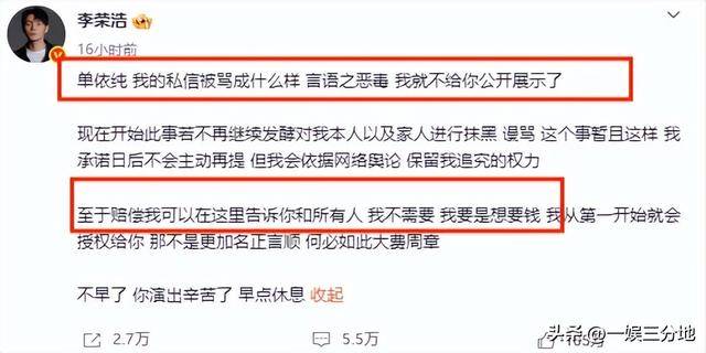 并且还说自己不想要钱,不需要。