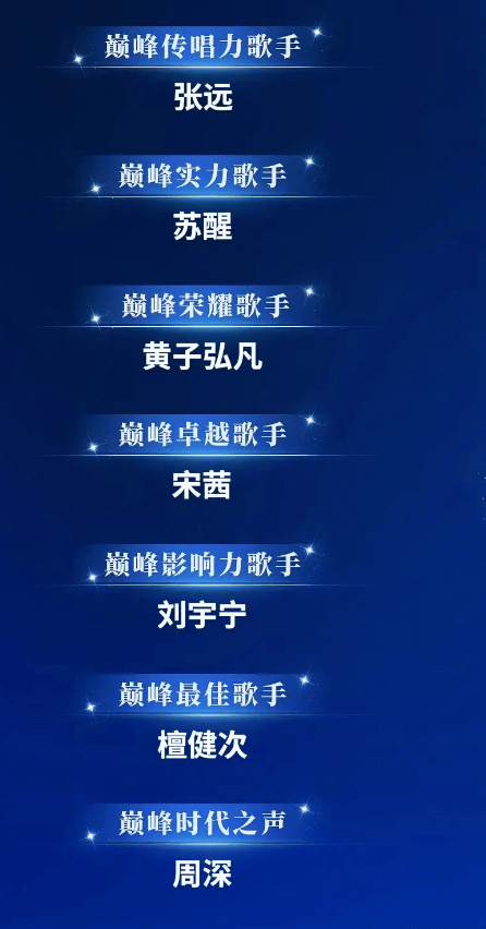 周深拿了个“巅峰时代之声”,周传雄是“巅峰年度标杆歌手”,这大概是名单里仅有的几个让人觉得“实至名归”的名字。