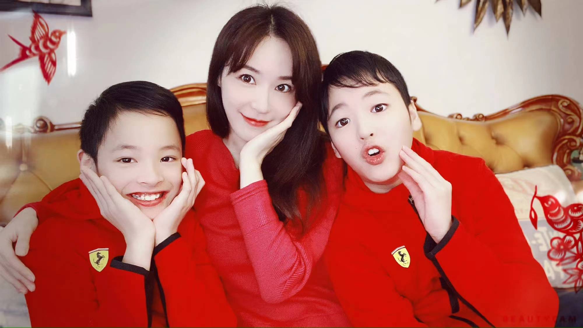 两个儿子,大儿子长得像马景涛,小儿子像妈妈,总体来说都没有父母长得好。