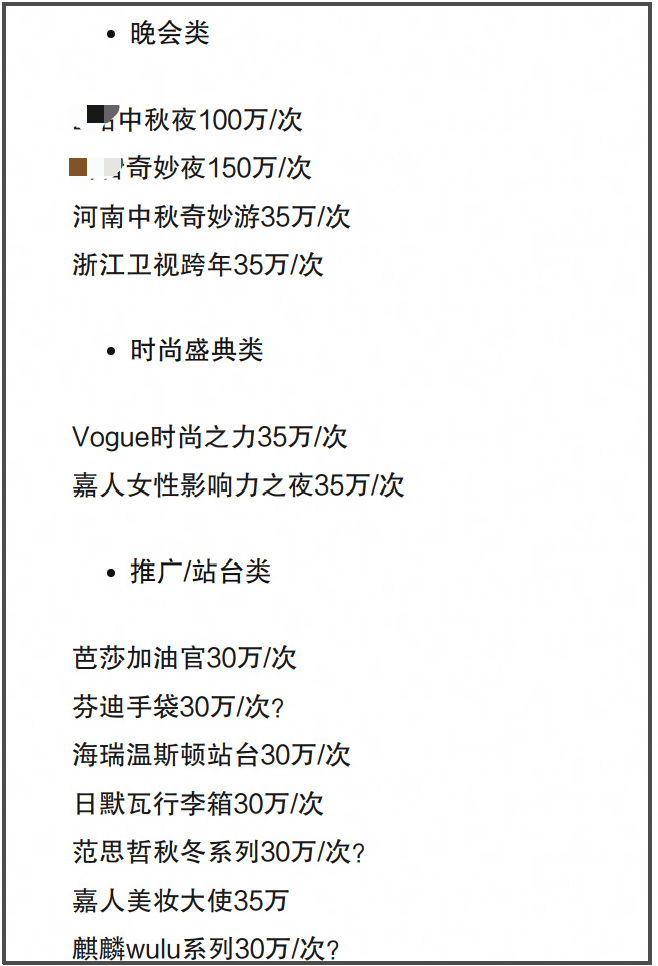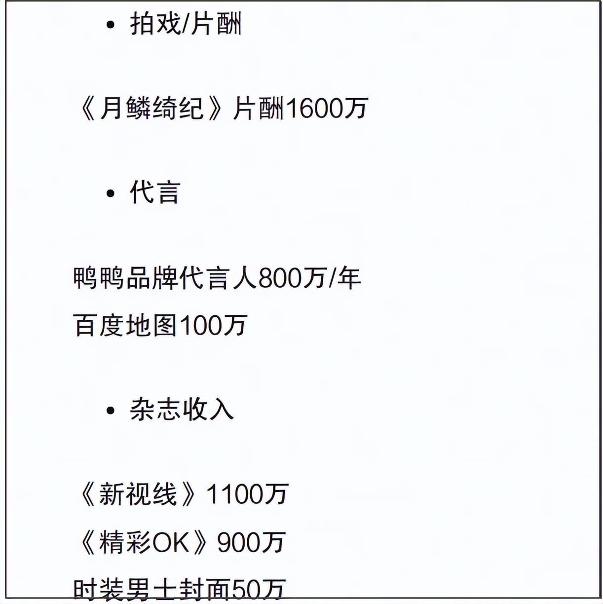 整理举报人列举的鞠婧祎未如实申报收入表,网友比较感兴趣的部分是杂志收入和网剧片酬,列表显示鞠婧祎《月鳞绮纪》片酬有1600万,杂志收入1100万,大型晚会高达百万一场,普通晚会活动一场平均在30到50万之间,推广活动一场30万左右。