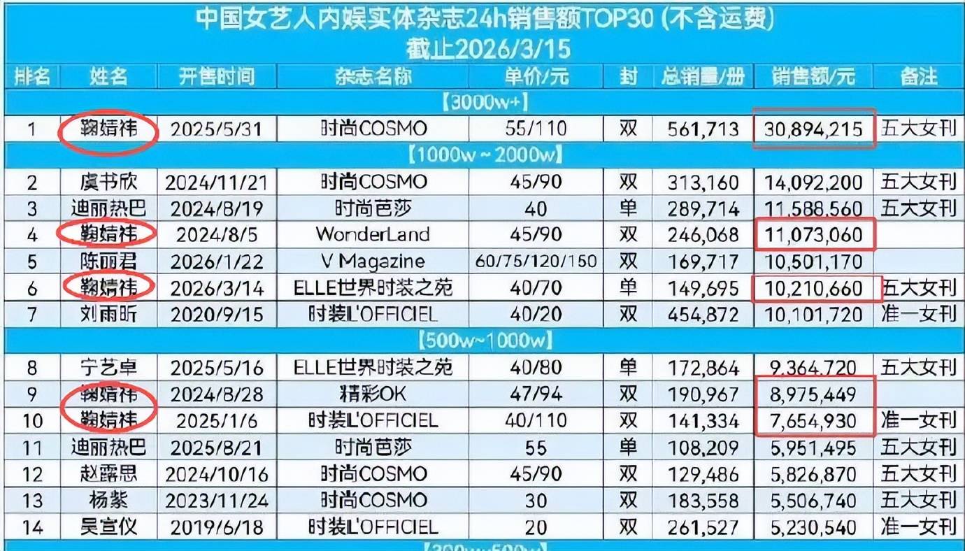 看到鞠婧祎一本杂志的收入就有1100万,不少网友提出了质疑,认为这个证据不严谨,扒出了鞠婧祎那本杂志的实际销售额是900万。