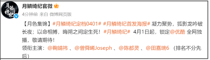 尽管鞠婧祎税务问题登上热搜,但是鞠婧祎和剧方都没慌,照旧官宣新剧定档,丝毫不在意税务问题,评论区的粉丝都还积极控评。