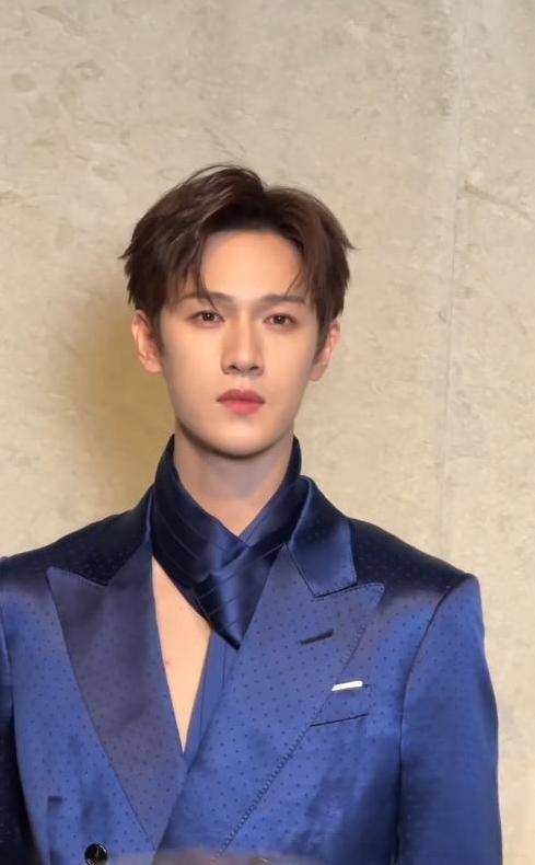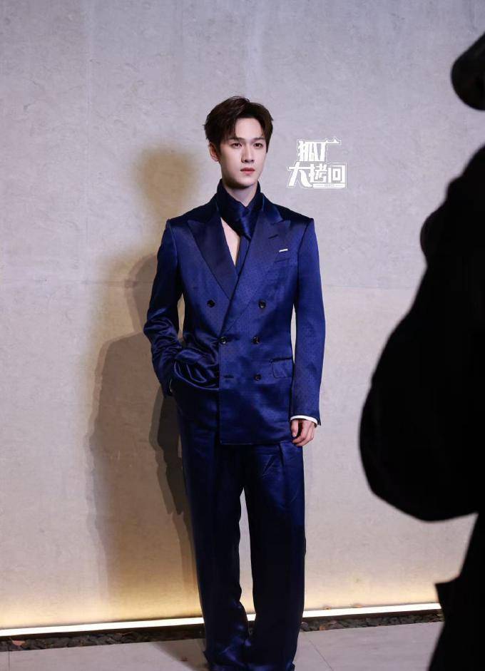 先看唯二一位受邀到场的男星品牌大使李昀锐,身穿深蓝色缎面真空西装套装亮相活动,这一套西装质感褶皱没啥亮点,深蓝色的选色算是一大特色,衬得他更加肤白贵气。
