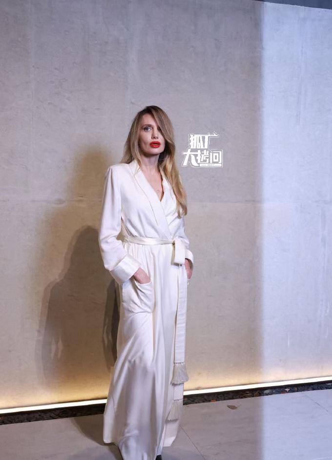 国际著名影星安吉丽娜朱莉也参与了上海的活动,并以一件白色的束腰塔夫绸制风衣作为亮相。