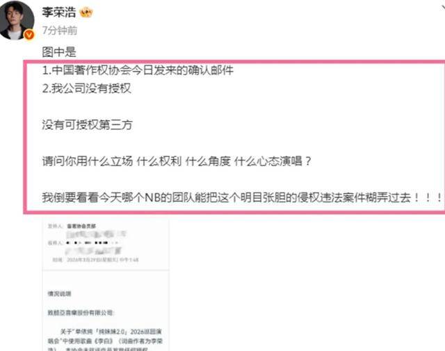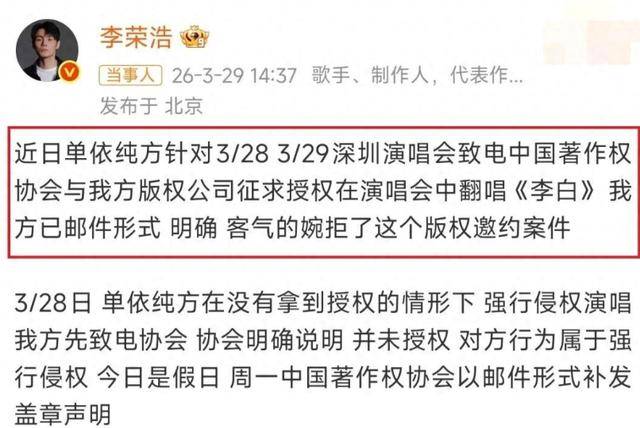 3月29日,李荣浩直接发文开怼,语气一点不委婉。