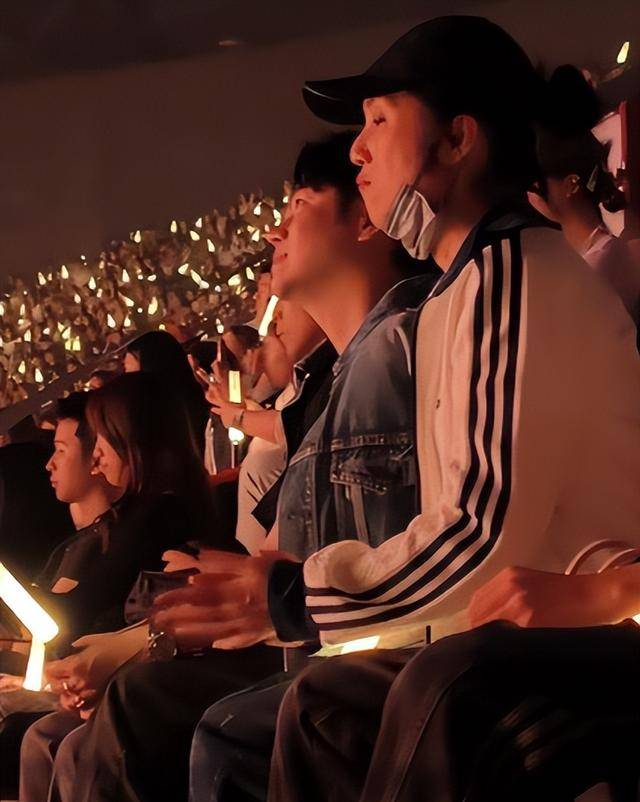 全程低调看演出,偶尔还会跟着节奏点头,看起来就是单纯来捧场的。