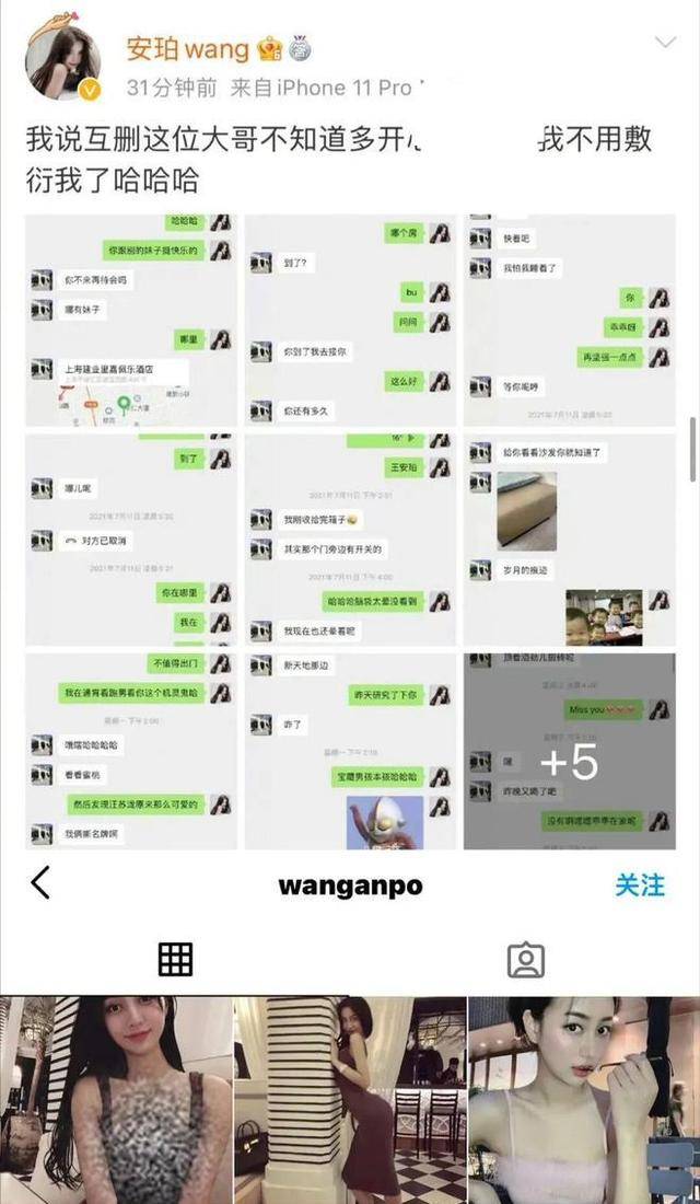 至于传闻中拿过被牵扯的那个女网红,是2021年一个叫“安珀wang”的。