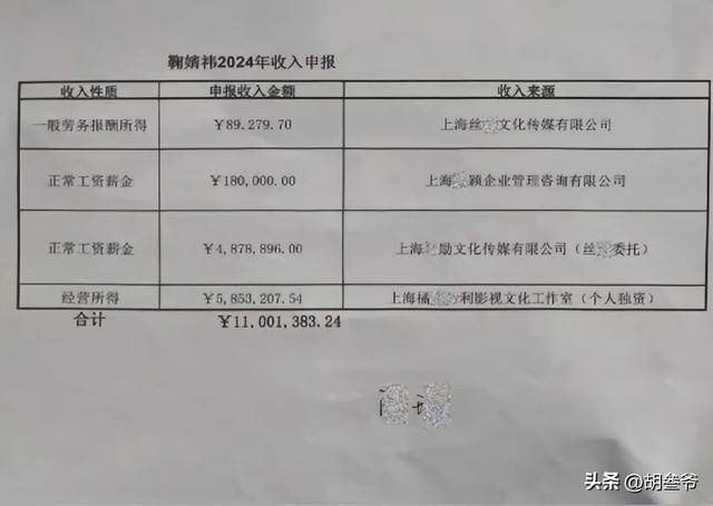 丝芭称鞠婧祎2024年全年向税务部门申报的收入只有1100.18万元,但仅2024年6月到12月这半年时间,她参与的影视、商务活动收入保守估计就超过5000万元,瞒报比例高达88%。