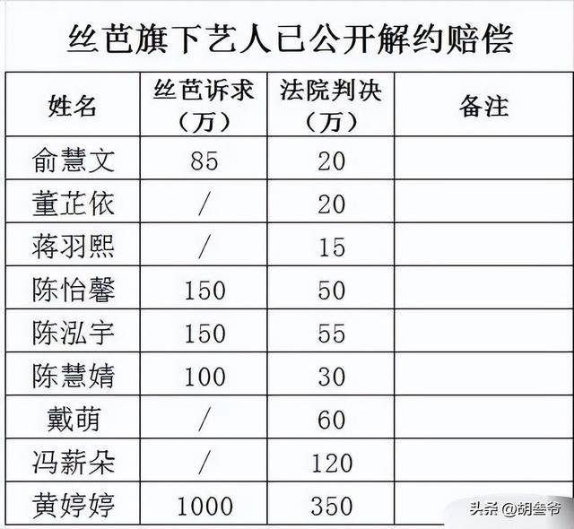 其实丝芭的“霸道”在业内早就有先例,之前旗下艺人黄婷婷解约,就被公司索赔1000万违约金,其他想要解约的艺人,也大多遭遇了高额索赔和资源封杀。