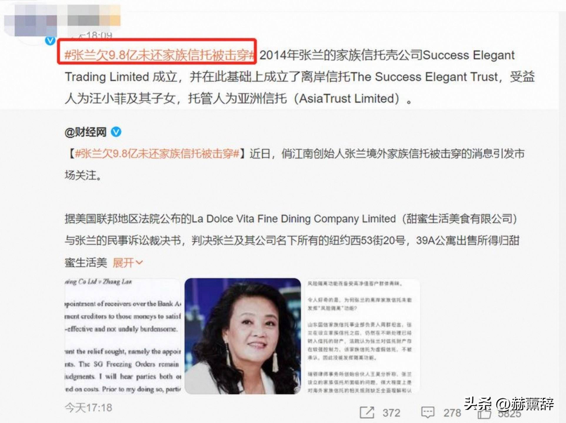 其先是在新加坡击穿了张兰的家族信托,将其中沉睡的 5537万美元资产悉数接管;继而又将目光锁定她在各地的每一笔大额消费与资产配置。