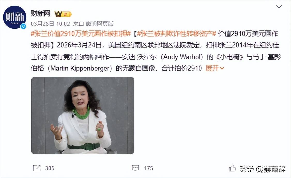 这并非张兰首次在海外资产方面“折戟”——先前位于曼哈顿的豪华公寓 已被法院拍卖用于偿债,而今名画再遭扣押,意味着她最后的资产堡垒正在加速崩塌。