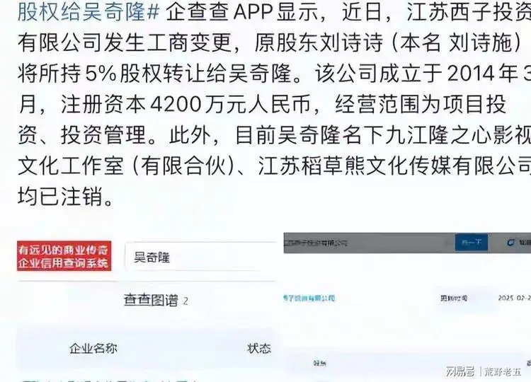 最关键的是,在2025年2月份刘诗诗就被曝转让公司股份给吴奇隆。