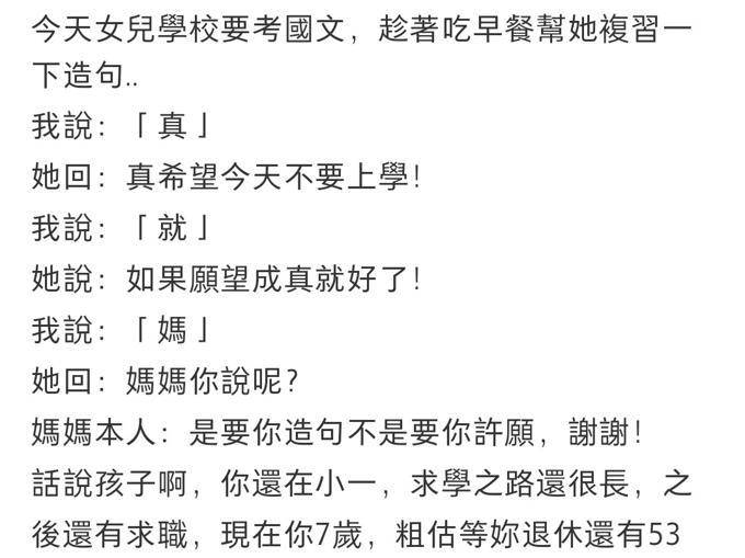 陈怡蓉同时分享了自己和女儿之间的一段趣事,披露了女儿上学要考国文的消息,那是我们语文。