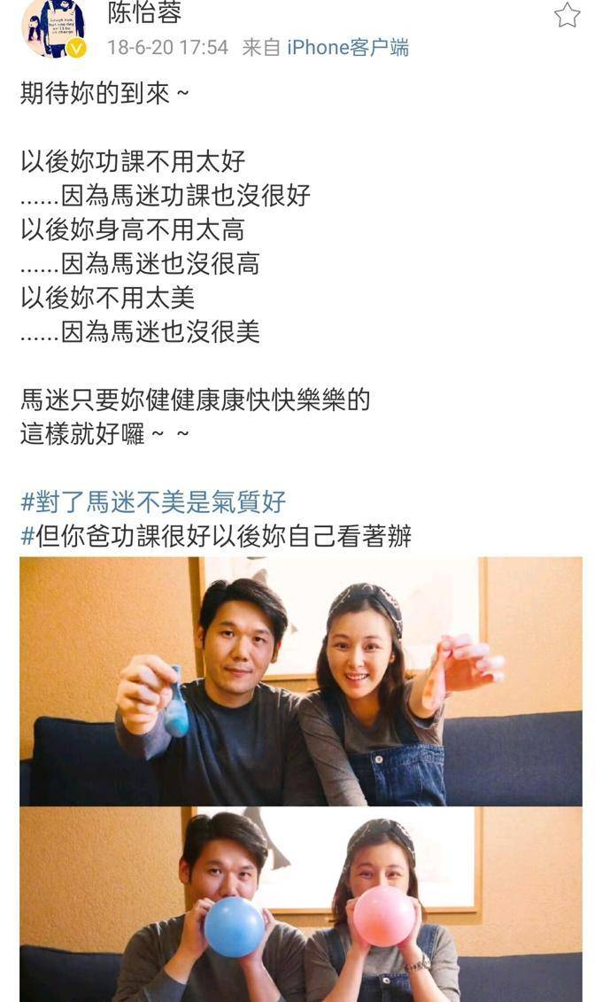 陈怡蓉此前还曾爆料,自己女儿的五官就像是父亲一样,并没有遗传到自己大大的眼睛、高高的鼻梁,但是长相却非常可爱。