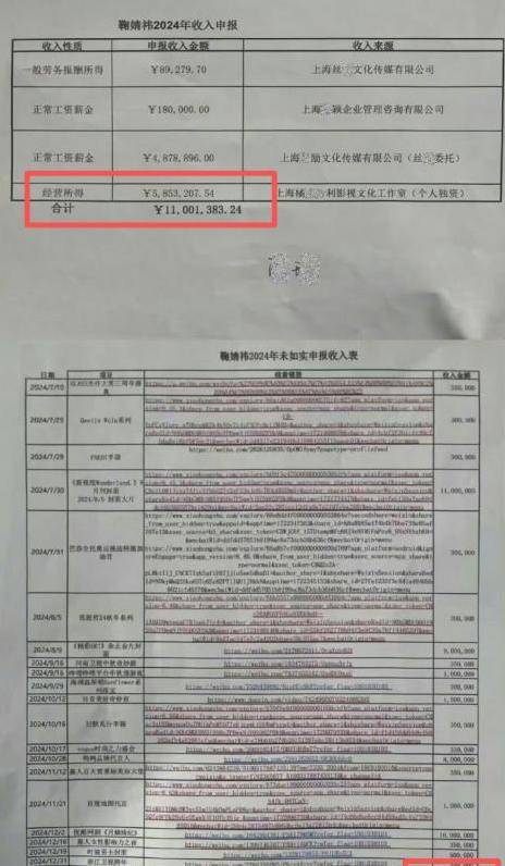 举报信明 确指出:鞠婧祎 在2024年全年 的申报收入 为1100万,但 真实 的收入 情况如何呢? 仅仅在去年 的下半 段,她 参与了超过20 个影视和商务项 目, 其实际收 益达到了5000万 以上。 申报 金额为1100万, 但实际拿 到了5000万, 由于隐瞒 ,损失接近4000万, 这一比例高达88%!