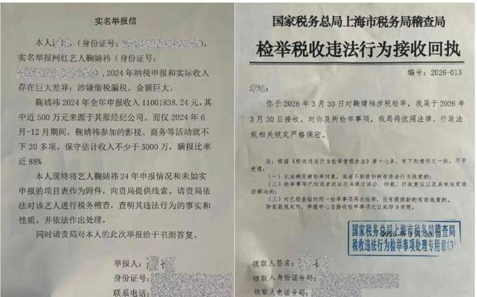 娱乐圈又炸锅了!3月30日,有着“四千年一遇美女”称号的鞠婧祎被实名举报。前经纪公司丝芭传媒,直接向上海税务部门实名举报她偷税漏税,税务部门当场就受理了。举报信