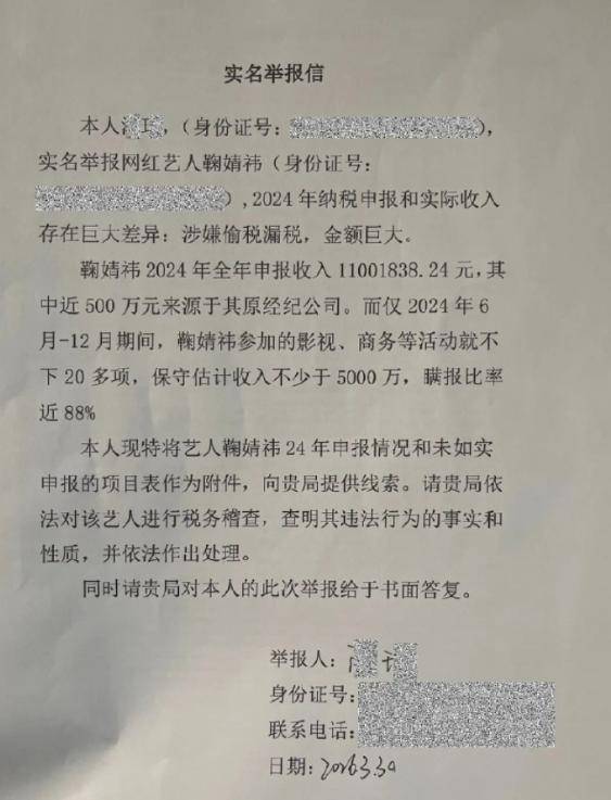 祸不单行的是,就在定档当天,鞠婧祎这边突然爆出负面消息,被人实名举报存在涉税问题,相关部门已经受理,还开出了接收回执。