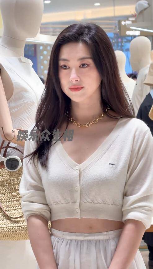 她的穿搭也十分简约,白色短款上衣搭配一条裙子,简约又高级,举手投足间都散发着迷人的气质。