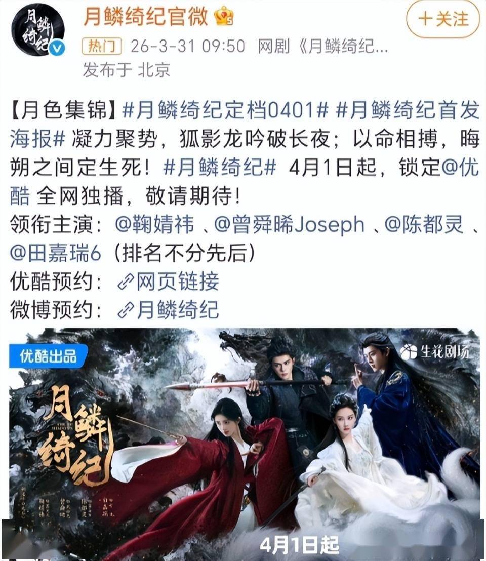 眼看着《月鳞绮纪》开播在即,不知道能否在口碑上为鞠婧祎助力。