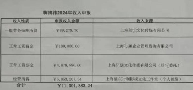 其中表示 “鞠婧祎全年申报收入1100余万元,近500万来源于原公司。而仅下半年鞠婧祎参加的影视、商务等活动就不下20多项,保守估计不少于5000万,瞒报比率近88%”。