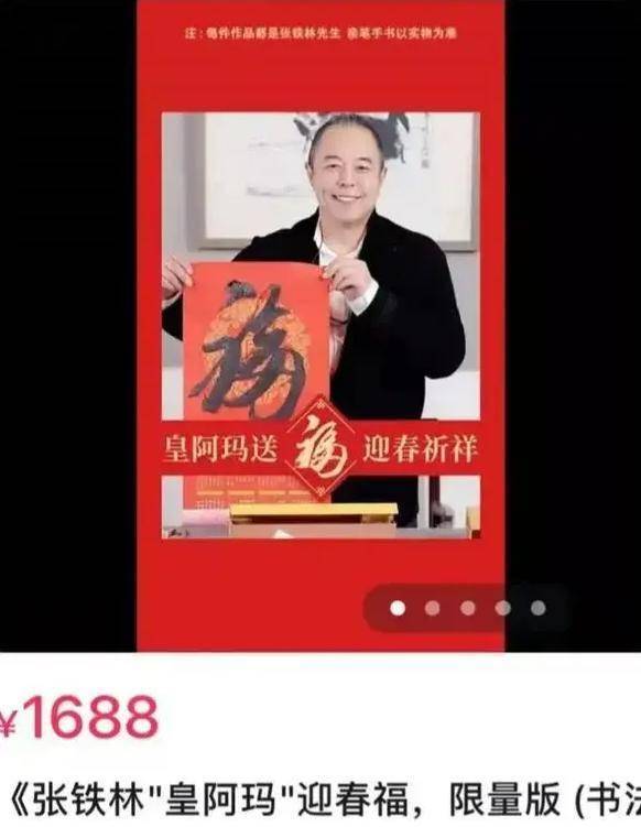 2022年春节前夕,张铁林开启直播卖字,趁着春节的热度,他声称自己写的30个福字,每个售价1688元。