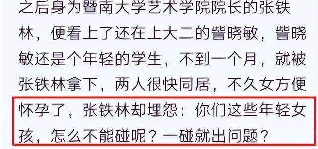 那时候张铁林在大学当院长,竟然和自己19岁的女学生訾晓敏搞起了师生恋。