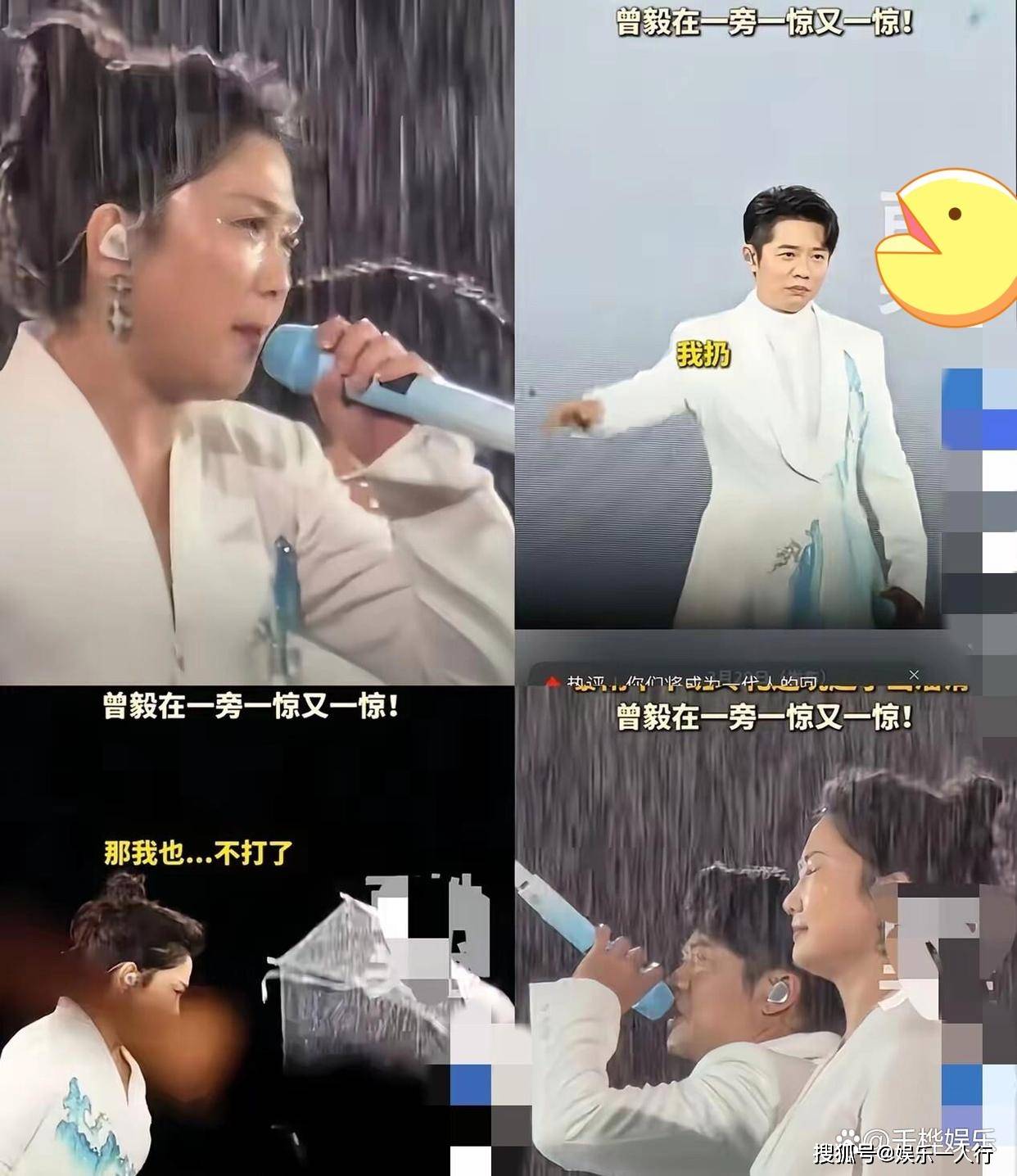 先看现场。暴雨是演唱会进行到第四首歌时突然砸下来的,豆大的雨点瞬间浇透内场。工作人员紧急递上透明雨伞,但曾毅撑了没一会儿,就露出了他标志性的、带点“坏笑”的表情,然后毫不犹豫,抬手就把伞扔到了身后,大步冲进雨幕中央。这个动作干脆利落,没有半点犹豫。一旁的玲花明显愣了一下,举着伞迟疑了大概三秒钟。镜头特写里,她的表情从震惊到无奈,最后仿佛认命般,也咬牙把自己的伞扔了,嘴唇翕动,那句被唇语专家们破译的“烦人”,就飘了出来。