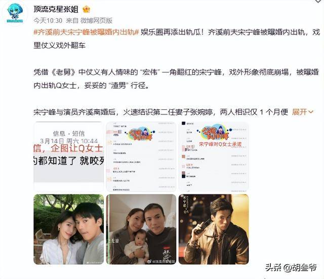 3月31日,齐溪的前夫宋宁峰被曝婚内出轨,丑闻闹得沸沸扬扬,被指2025年1月就勾引Q女士。
