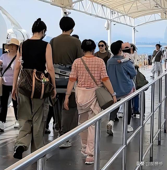 前两日就有网友在三亚某景区码头偶遇了他们一家人。