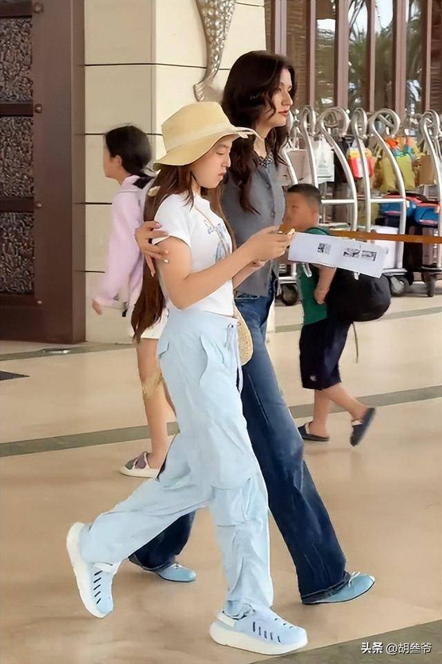 3月31日的三亚亚特兰蒂斯,阳光正好,有网友在酒店园区内拍到了和父母一起出行的小泡芙。