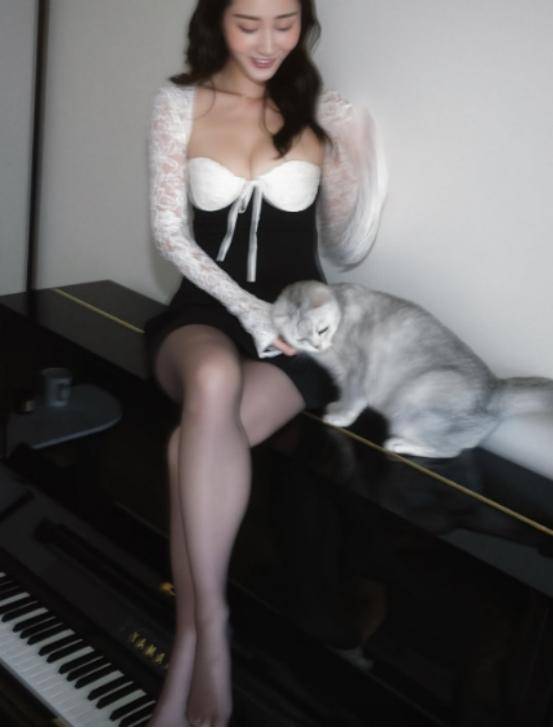 近日陈晓彤在其社交网上,发布了多张性感照片。其中一组照片,陈晓彤身穿超低胸连衣裙,正坐在钢琴上面,旁边还有一只可爱的小猫陪伴。