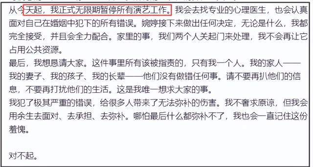 宋宁峰婚内出轨后续来了!他本人发布长文向张婉婷、女儿、小三Q女士及长辈道歉,并回应了“张婉婷拿裸照威胁小三”等争议爆料,信息量颇多。