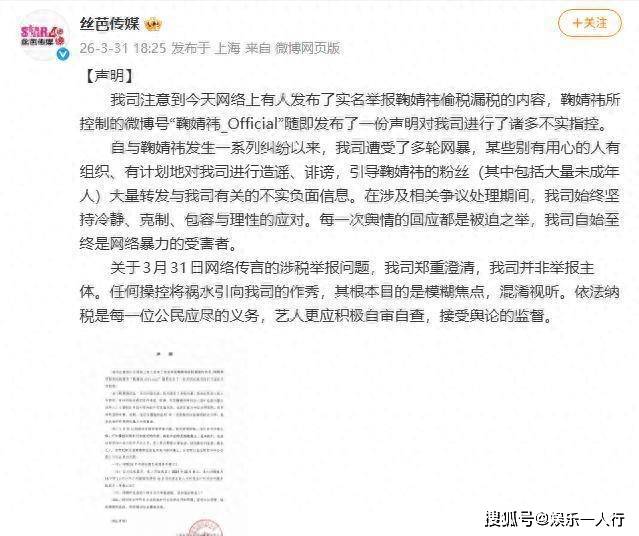 而鞠婧祎这边呢,中午就发了声明,态度也很强硬。她说自己一直依法纳税,已经配合完成了税务部门的抽查检查,还直接点名丝芭传媒,说对方半年来一直在发布不实信息,操控舆论,要扼杀她的演艺事业。她已经委托律师对丝芭提起了诉讼,要追究法律责任。两边各执一词,火药味十足。