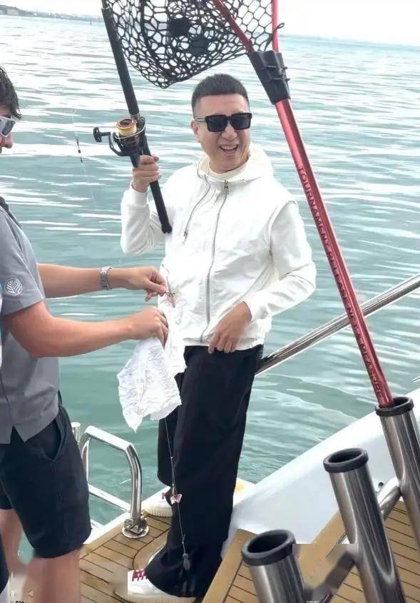 画面里,他乘坐游艇出海,一身装扮格外接地气,完全没有明星的刻意精致。上衣皱皱巴巴,像是随手从行李箱拿出来就穿上,丝毫不在意形象;更有意思的是,他的裤子松松垮垮掉着档,几乎快滑到膝盖,可他全程专注钓鱼,半点都没察觉,只顾着享受海上垂钓的乐趣。