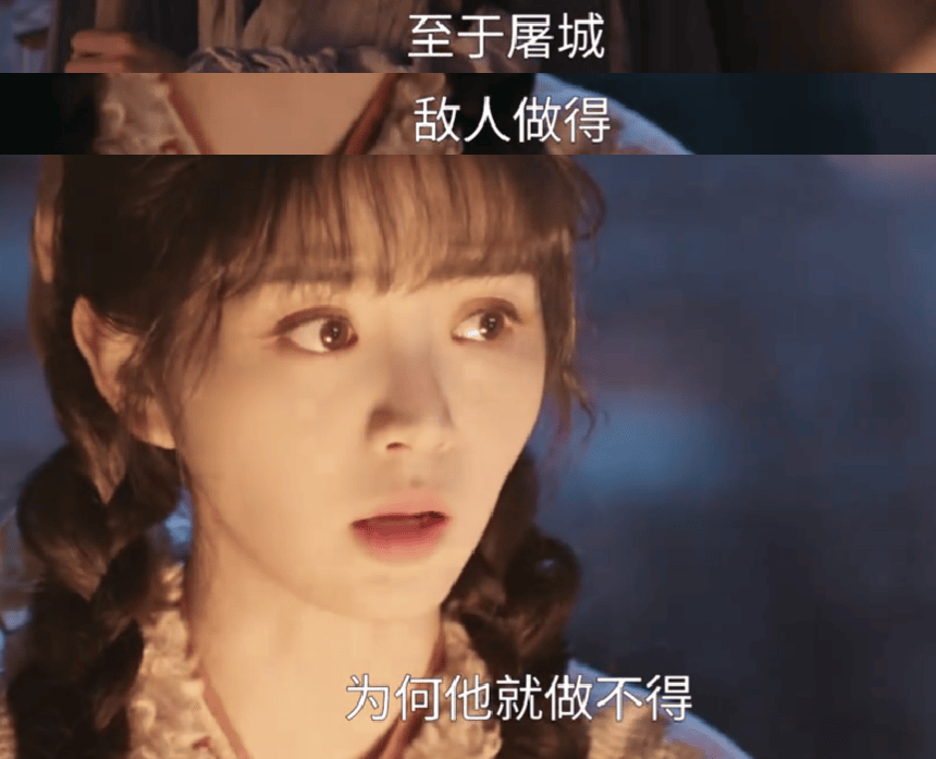 还有女主说男主饰演的武安侯是英雄,“至于屠城,敌人做得,为何他就做不得”。这是正派主角能说出来的话?