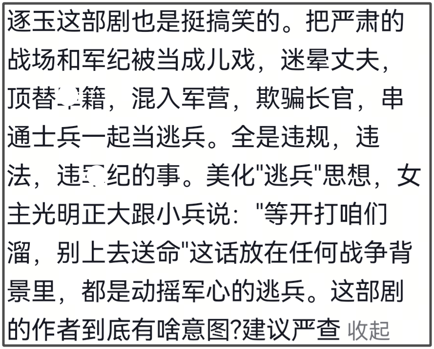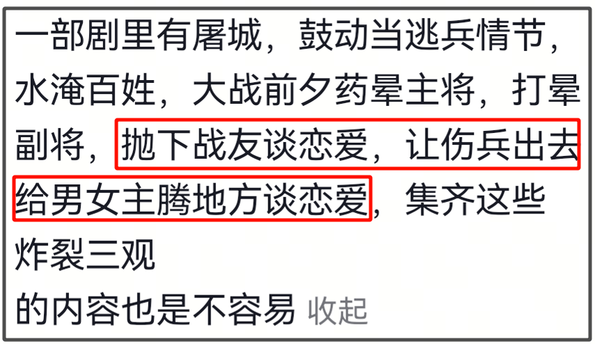 还有网友呼吁严查幕后班底和投资人,加这么多原著不存在的台词和内容,还恰好都是在权谋战争的情节当中,也太巧了吧。