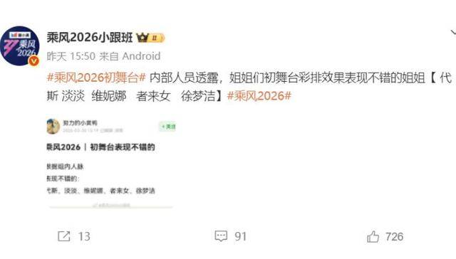 但是在《乘风2026》的相关讨论当中,她的名字极少出现在热搜之上。