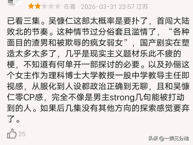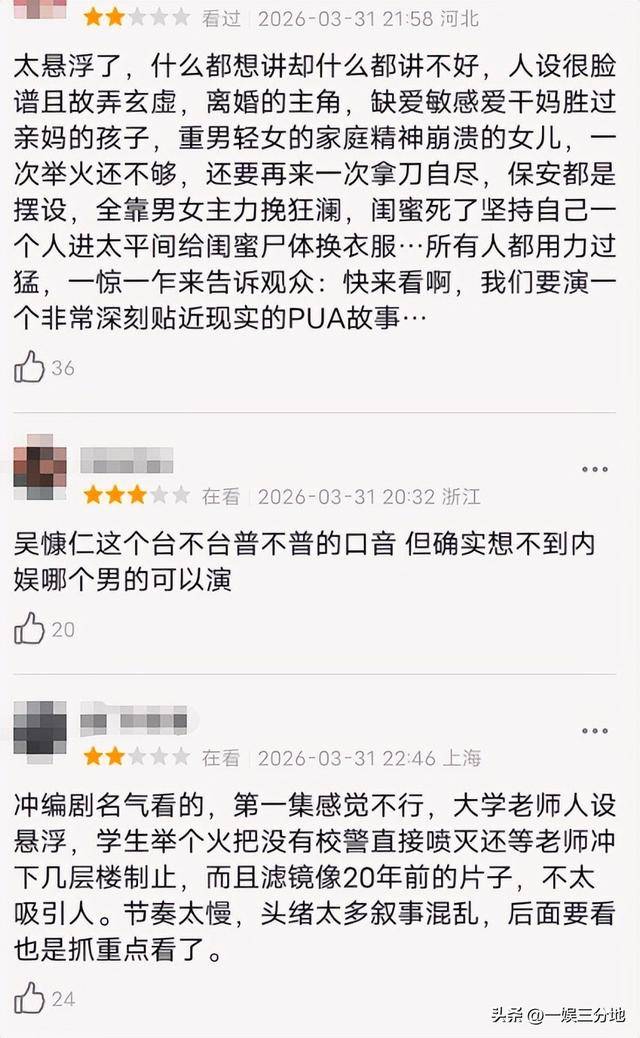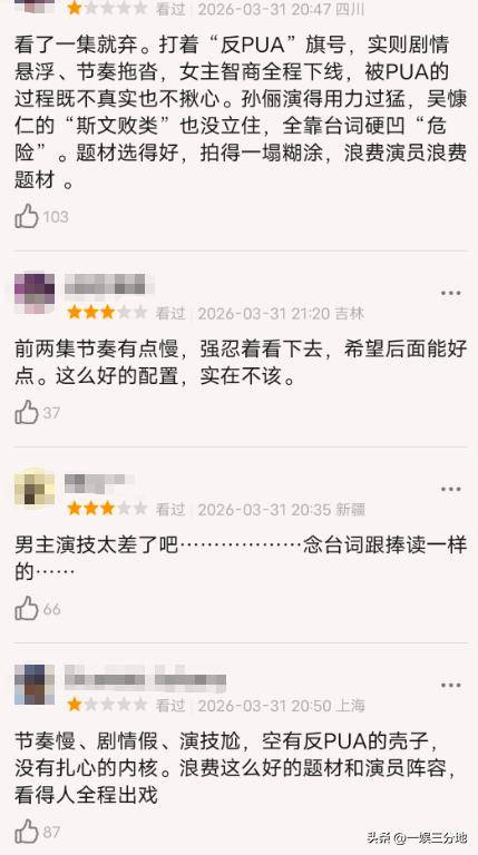 除了剧情上的问题之外,男主角的存在,包括他一看就会PUA女主的剧情,也都得到了观众的差评。